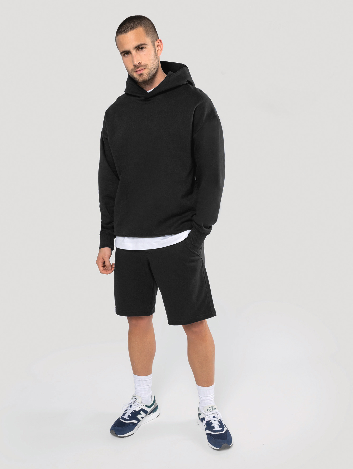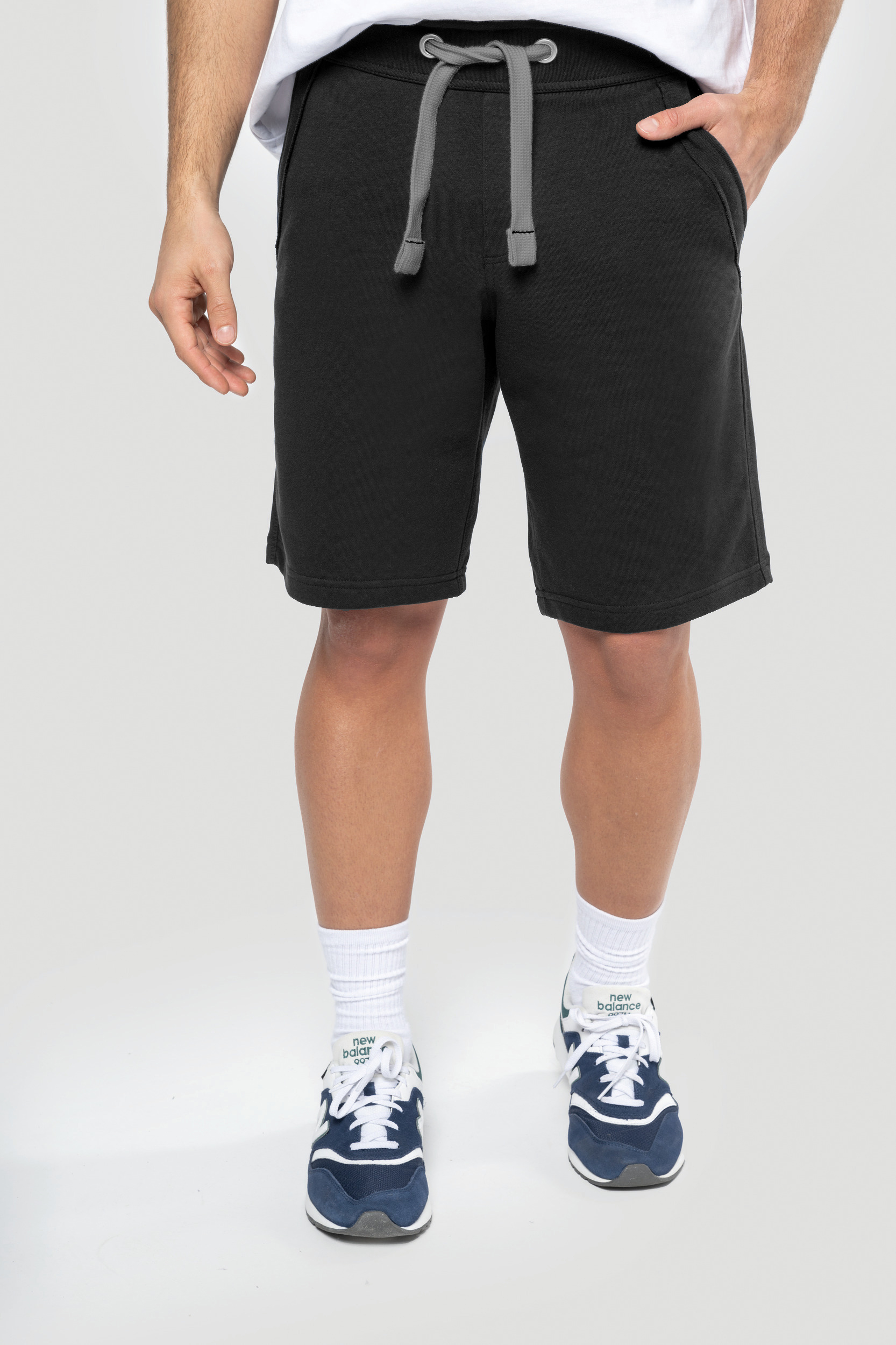 Calções tipo Bermuda de alta qualidade, fabricados numa mistura de algodão penteado e poliéster de alta gramagem, espessa e durável. O forro interior em French Terry garante um conforto extra, enquanto a cintura canelada com cordão proporciona um ajuste seguro.